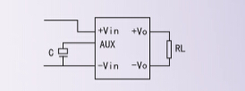 1.DC-DC電源模塊輔助電容端的應(yīng)用 由于電源模塊體積的限制,內(nèi)部不可能接入較大的濾波電容,為進一步改善參數(shù),我公司的部分產(chǎn)品設(shè)有輔助電 容端AUX,用戶可在電源外部靠近AUX端加一只優(yōu)質(zhì)電解電容,以提高濾波效果改善電源的參數(shù)。接線如圖所示。
