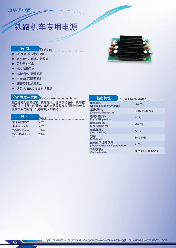 該電源專為鐵路機(jī)車(chē),機(jī)車(chē)通訊,進(jìn)站信號(hào)設(shè)備,機(jī)車(chē)控 制系統(tǒng),液壓控制系統(tǒng),車(chē)載電腦等領(lǐng)域應(yīng)用設(shè)計(jì)的產(chǎn)品 具有輸入范圍寬,功率密度大的特點(diǎn)